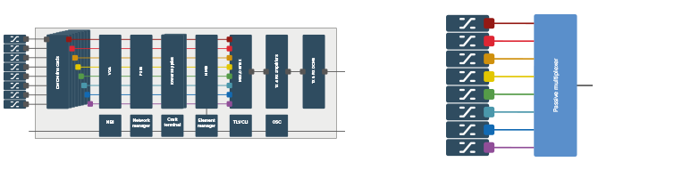 Embedded DWDM offers the same capacity as an active transponder-based DWDM platform, but in a much simpler way. With a passive multiplexer at the heart of the system, you eliminate unwanted heat or noise emissions, keep space to a minimum, and gain the ultimate green data center DWDM network. New services are quickly and conveniently added just by adding the required number of optical transceivers. Embedded DWDM — it really is that simple.